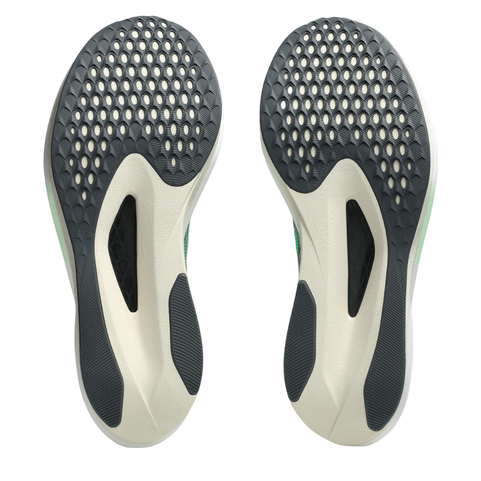 When combined with a lower drop (7mm), a lower total stack height (reduced 6mm in the heel and 5mm in the forefoot from the previous version), and a reconfigured carbon plate, this shoe provides a responsive ride and better control.